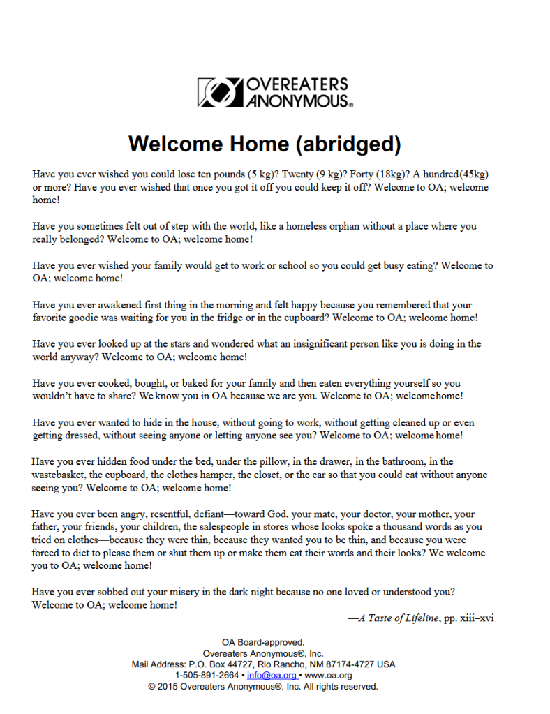 Free download – Where Do I Start Newcomer pamphlet https://oa.org/app/uploads/2022/06/where-do-i-start-everything-a-newcomer-needs-to-know.pdf
